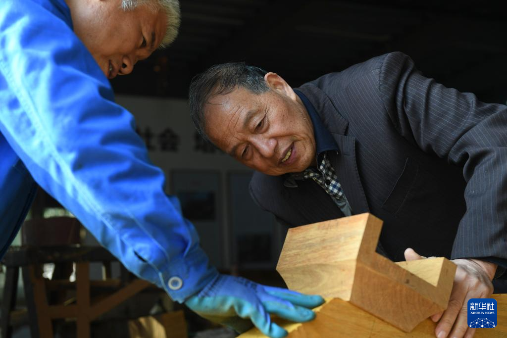 11月22日,黄大树(右)走进汇溪古建营造技艺博物馆。