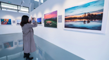 11月25日,观众在“人类的记忆——中国世界遗产”摄影展上拍照。