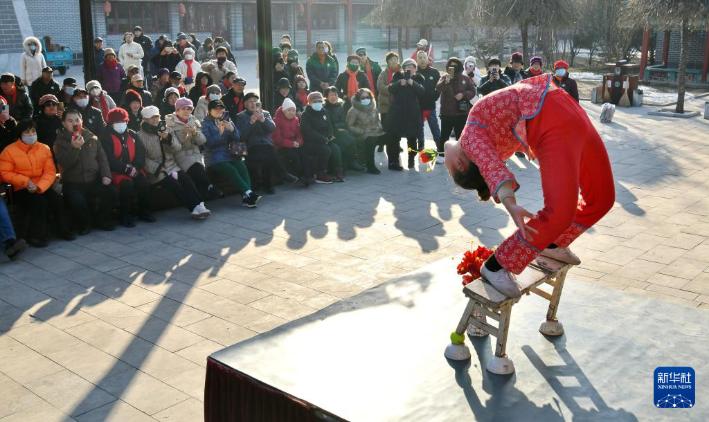 12月17日,杂技艺人在河北吴桥杂技大世界江湖文化城表演。