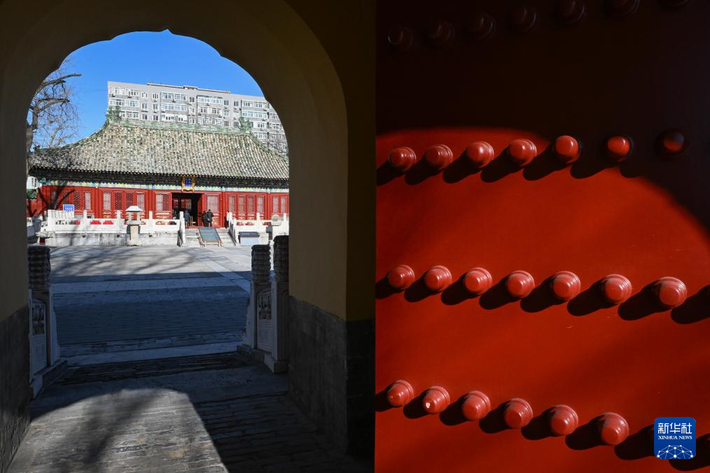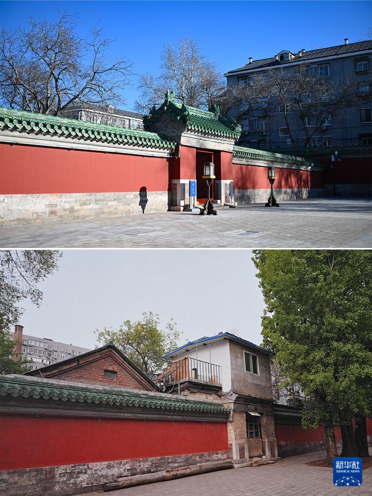 拼版照片:上图为腾退修缮后的庆成宫内宫门;下图为翻拍的庆成宫内宫门腾退修缮前的资料照片(12月21日摄)。
