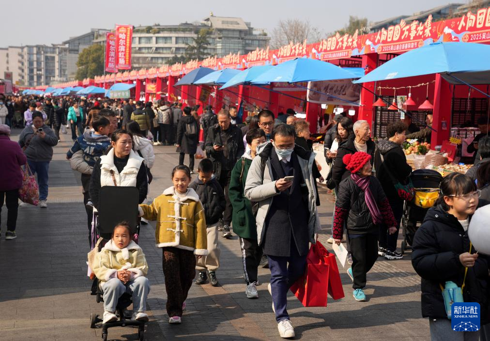 1月20日,人们在杭州2025吴山庙会新春购物节上选购年货。