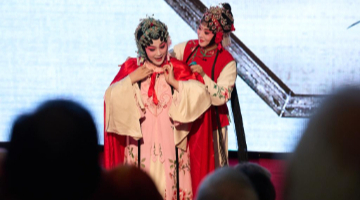 2月3日,北京市朝阳区非物质文化遗产灯彩扎制技艺代表性传承人马海捷(右)在地坛春节文化庙会上展示他制作的灯笼。