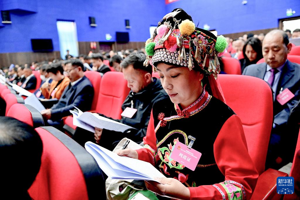 鲁丽华列席南涧彝族自治县第十三届人民代表大会第四次会议(2025年2月11日摄)。
