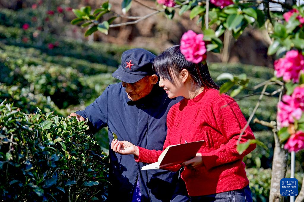 鲁丽华(右)在南涧彝族自治县公郎镇一家茶厂调研茶产业(2025年2月17日摄)。