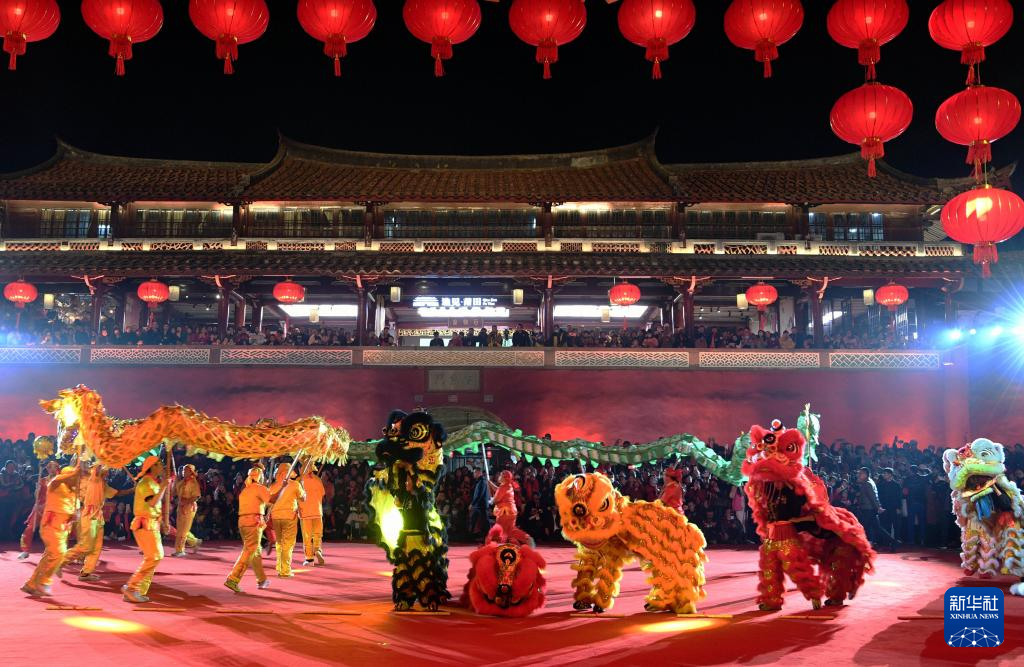 这是活动开场的舞龙舞狮表演(2月26日摄)