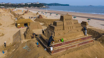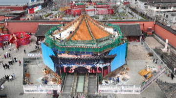 4月9日,在重庆市北碚区水土小学川剧排练室,一名参加川剧变脸演出的孩子在整理头饰。