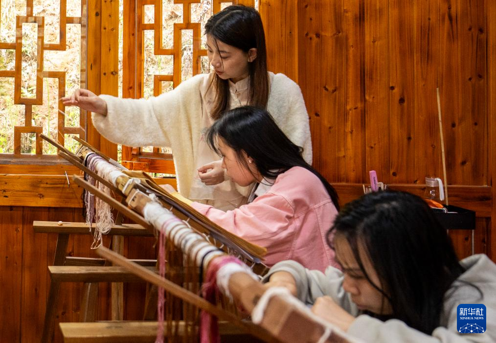 绣庄通过开展非遗进校园、刺绣展演、刺绣体验等活动,让越来越多的人了解桃源刺绣的魅力。肖瑶还不定期举办刺绣培训班,免费向村民传授刺绣技艺,为绣庄周边的妇女、返乡学生提供工作岗位,带动村民在家门口就业。为了给桃源刺绣赢得更广阔的生存空间,肖瑶带领团队开发文创产品,制作耳环、胸针、项链等饰品,把桃源刺绣带入大众视野,用青春焕新家乡非遗。