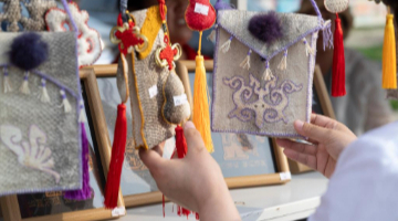 这是7月7日在江西南昌滕王阁景区内拍摄的滕王阁文创产品。