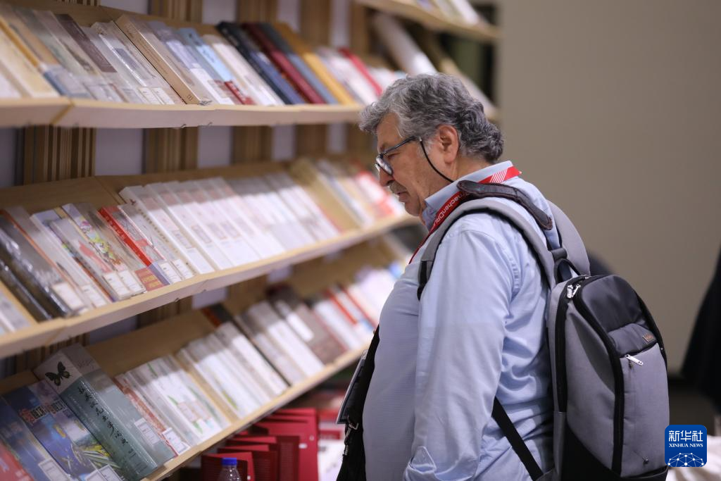 10月15日,读者在德国法兰克福书展中国联合展台翻阅图书。
