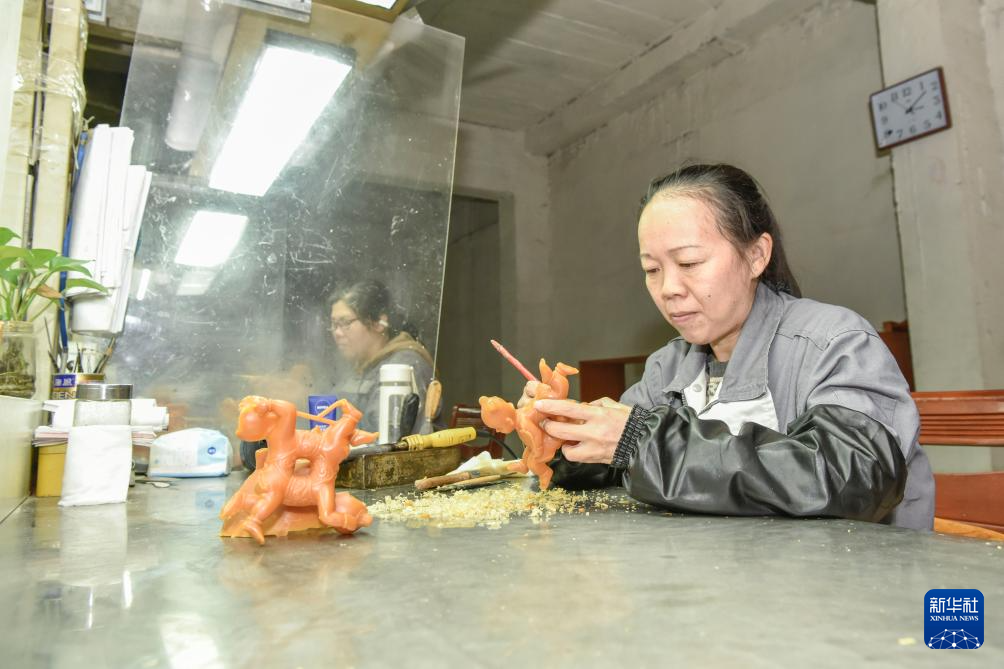 10月27日,郑东平在位于铜陵市的工作室内修蜡模。