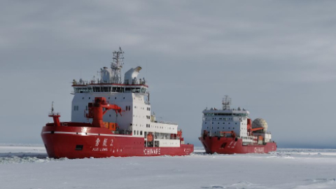 第42次南極考察丨“雙龍?zhí)綐O”:“雪龍2”號為“雪龍”號破冰引航