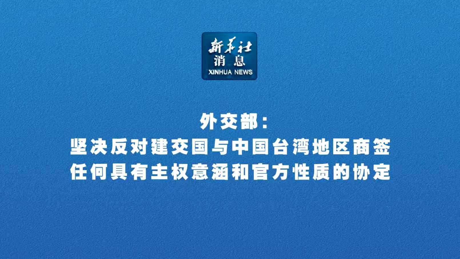 新華社消息丨外交部:堅(jiān)決反對(duì)建交國(guó)與中國(guó)臺(tái)灣地區(qū)商簽任何具有主權(quán)意涵和官方性質(zhì)的協(xié)定
