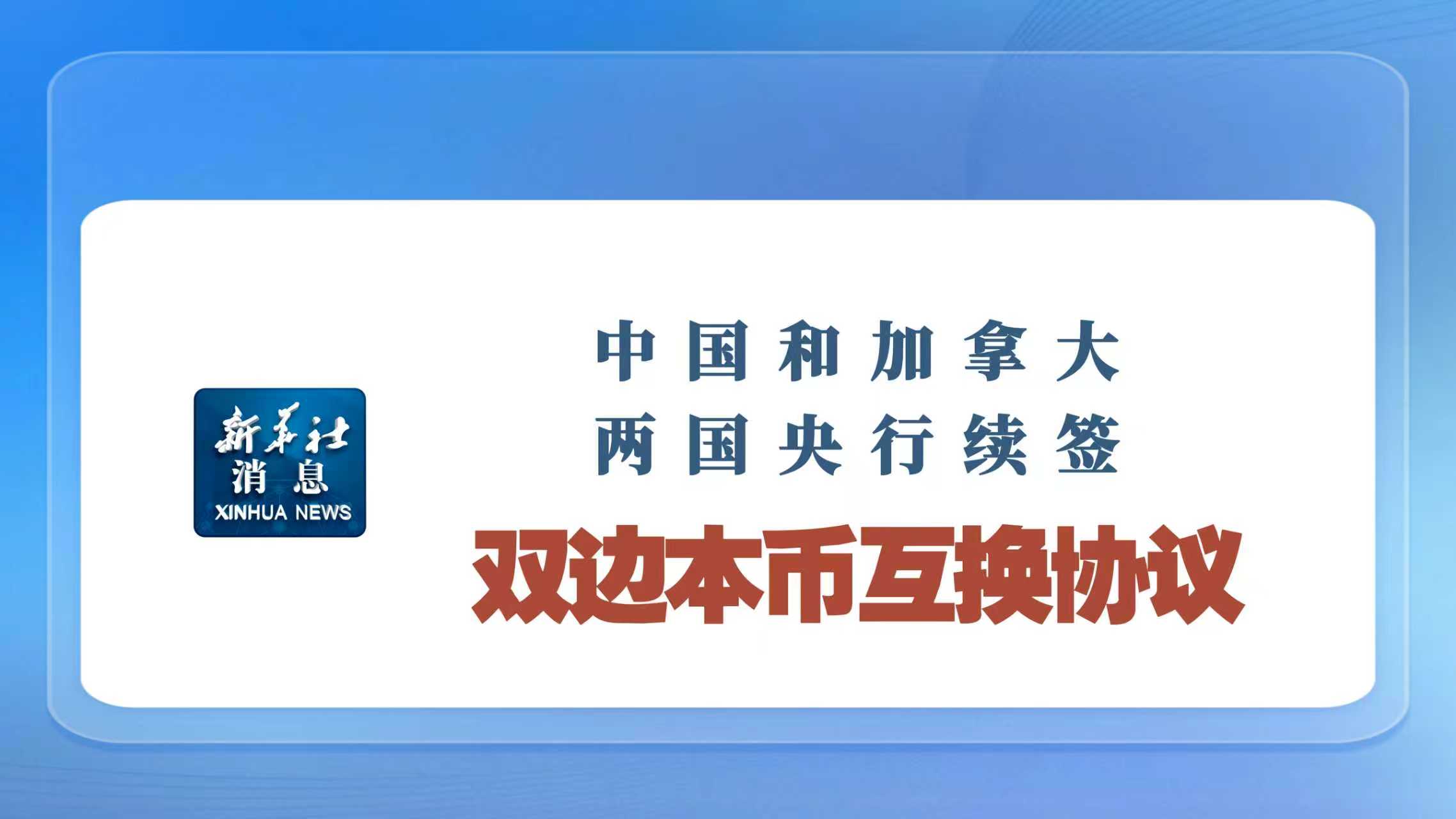 新華社消息丨中國(guó)和加拿大兩國(guó)央行續(xù)簽雙邊本幣互換協(xié)議