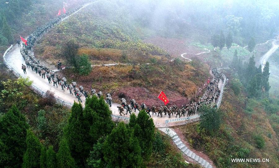 An armed police unit in SW China's Chongqing has a training on Jan. 3, 2018. (Xinhua photo)
