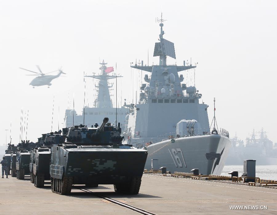 Marine corps of the PLA has a training at a military port in S China's Guangdong on Jan. 3, 2018. (Xinhua photo)