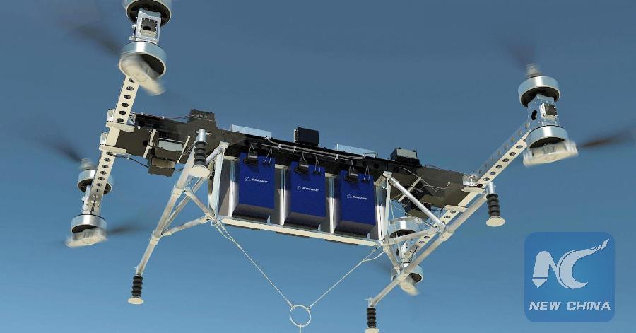 Boeing said in a statement that the cargo air vehicle (CAV) is capable of delivering a payload up to 500 pounds (about 450 kg) for possible future cargo and logistics.