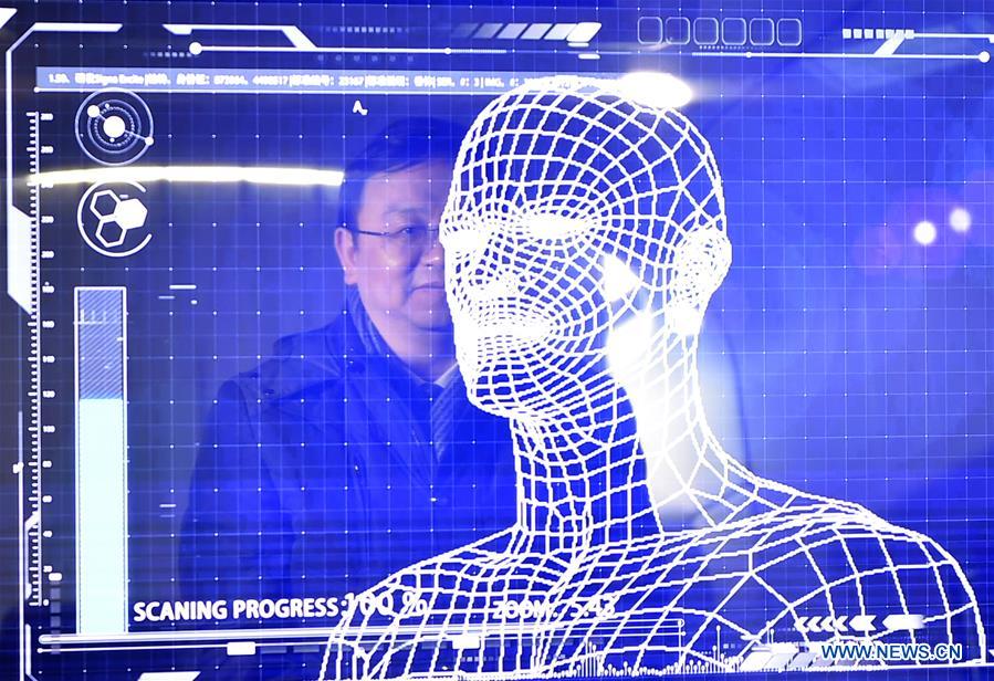 A manager of China's leading new energy vehicle maker BYD tries the facial recognition for starting a "Yungui" train during the launching of the "Yungui" system, a driverless monorail transit system, in Yinchuan, capital of northwest China's Ningxia Hui Autonomous Region, Jan. 10, 2018. (Xinhua/Wang Peng)