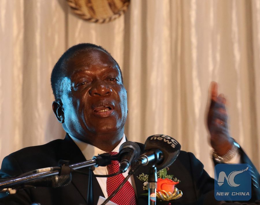 File photo shows Zimbabwean President Emmerson Mnangagwa speaking during a meeting of university and college officials, in Harare, Zimbabwe, Jan. 9, 2018. (Xinhua)