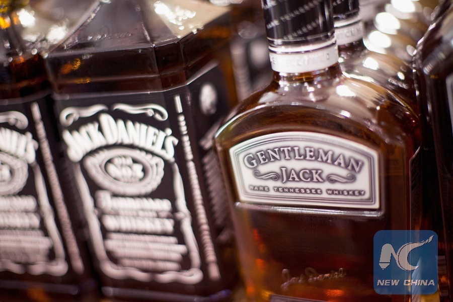 Jack Daniels Tennessee Whiskey products are offered for sale at a liquor store on Feb. 3, 2015 in Chicago, Illinois, the United States. (Xinhua/AFP)