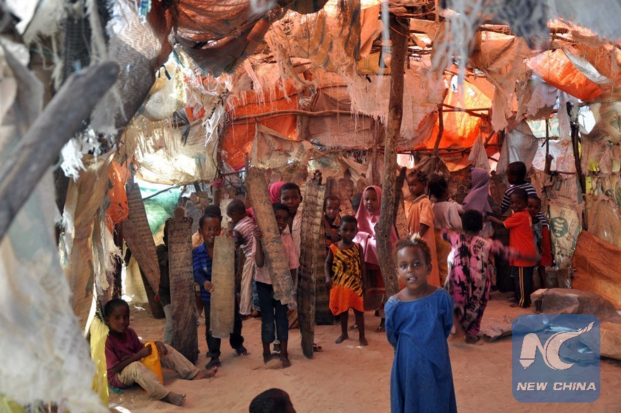 Children play at a camp for displaced people in Mogadishu, capital of Somalia, on Sept. 3, 2013. (Xinhua/Faisal Isse)