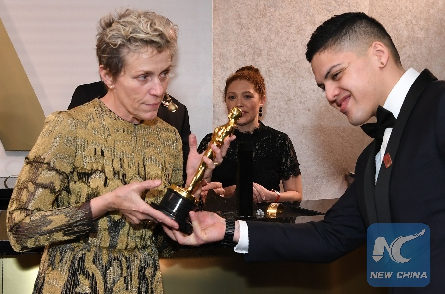 Best Actress laureate Frances McDormand attends the 90th Annual Academy Awards Governors Ball at the Hollywood & Highland Center on March 4, 2018, in Hollywood, California. (Xinhua/AFP)