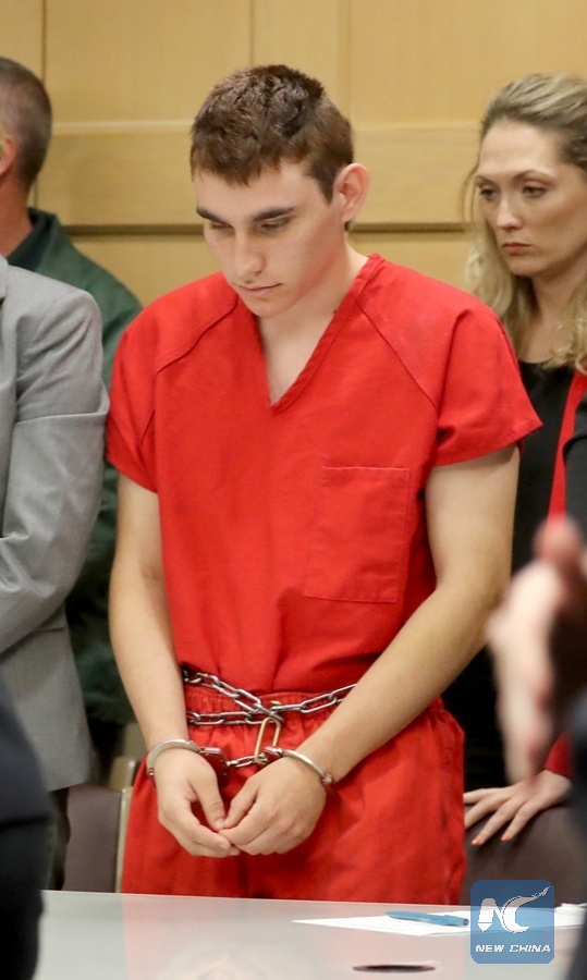 Nikolas Cruz, facing 17 charges of premeditated murder in the mass shooting at Marjory Stoneman Douglas High School in Parkland, appears in court for a status hearing in Fort Lauderdale, Florida, U.S. Feb. 19, 2018. (Xinhua/REUTERS)