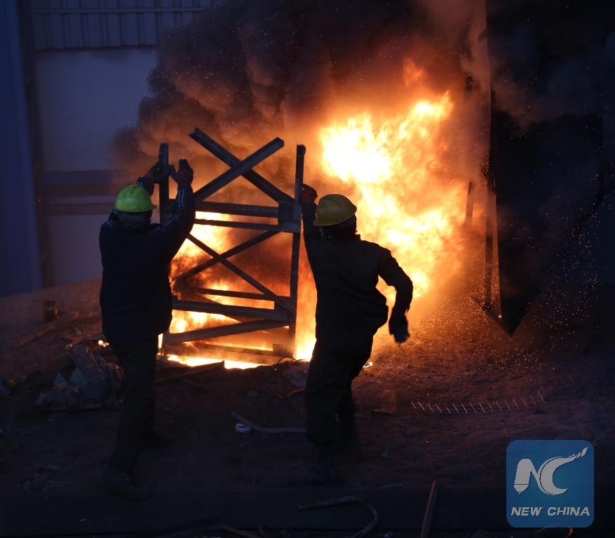 Afghan men work at the Khan Steel factory in Kabul, capital of Afghanistan, Jan. 9, 2018. (Xinhua/Rahmat Alizadah)