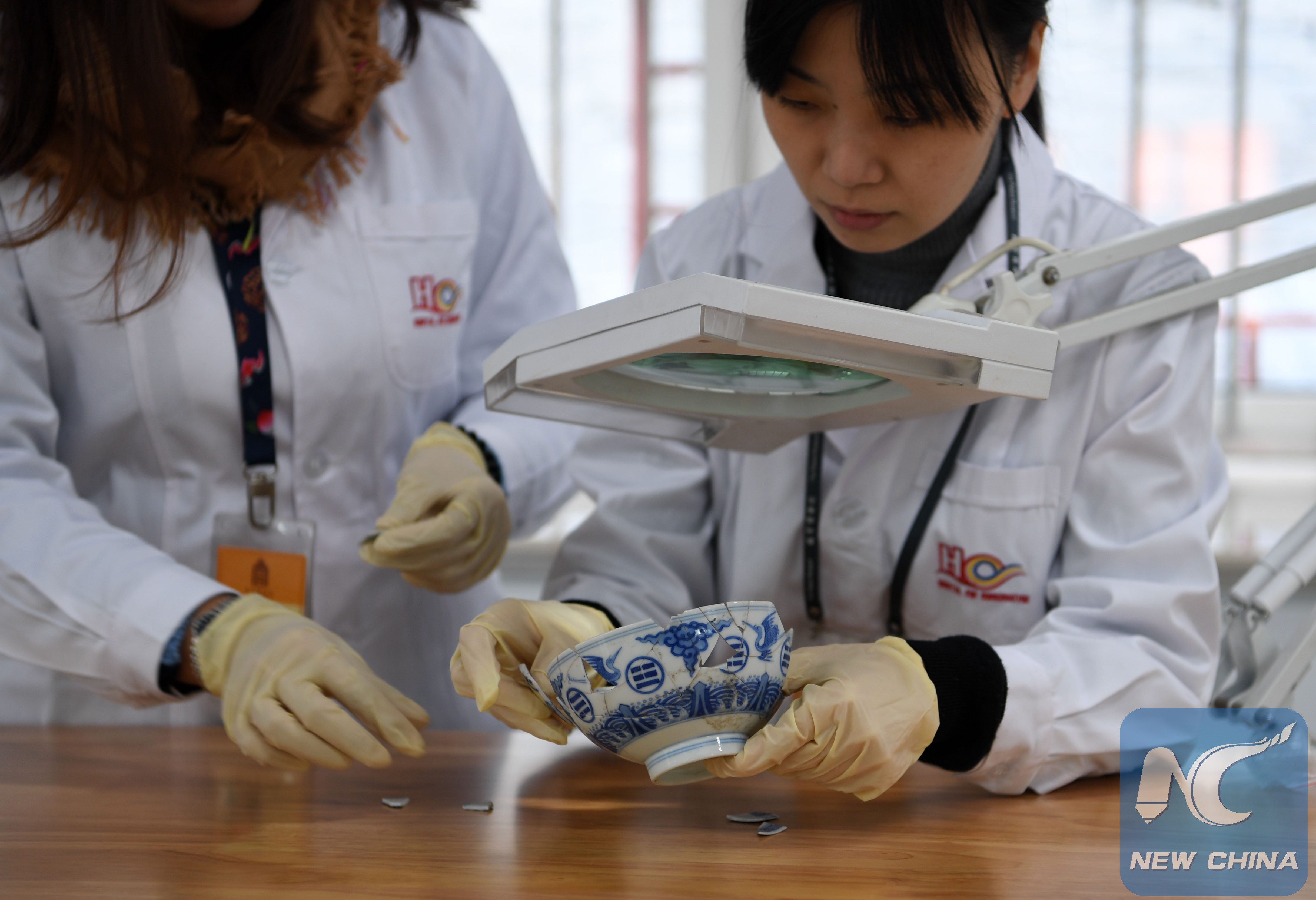 Relic-doctors are repairing a broken bowl