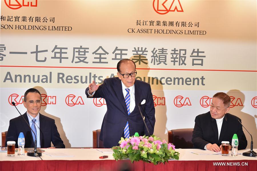 The net profit of CK Hutchison Holdings rose to 35.1 billion HK dollars in 2017, up 6 percent year-on-year. Its total revenue rose 9 percent to about 414 billion HK dollars. (1 U.S. dollar = 7.8 HK dollars)