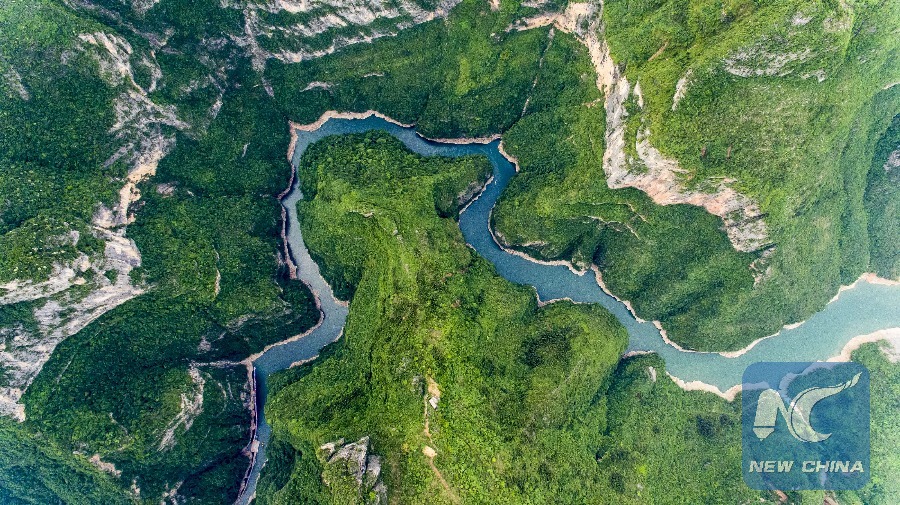 Aerial photo taken on May 10, 2017 shows the Shennyuxi scenic zone at the Wuxia Gorge of the Yangtze's Three Gorges area in southwest China. (Xinhua/Liu Chan)