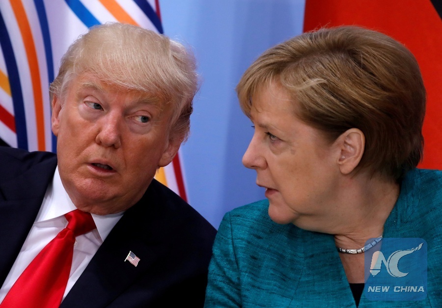 U.S. President Donald Trump and German Chancellor Angela Merkel attend the Women's Entrepreneurship Finance event during the G20 leaders summit in Hamburg, Germany July 8, 2017. (Xinhua/REUTERS)
