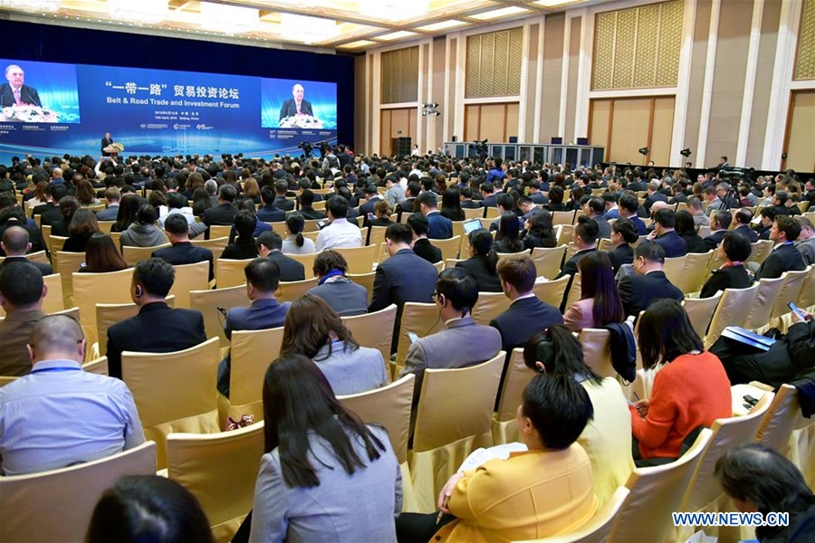?The Belt & Road Trade and Investment Forum is held in Beijing, capital of China, April 12, 2018. (Xinhua/Gu Chenxi)