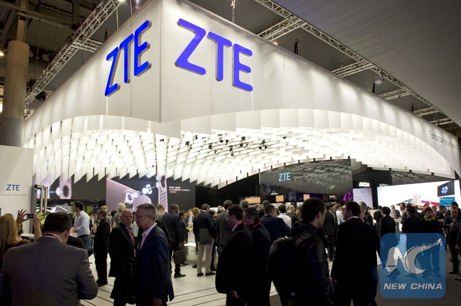 File Photo: Visitors walk in front of the ZTE stand at the Mobile World Congress 2016 in Barcelona, Spain, Feb. 22, 2016. (Xinhua/Lino De Vallier)