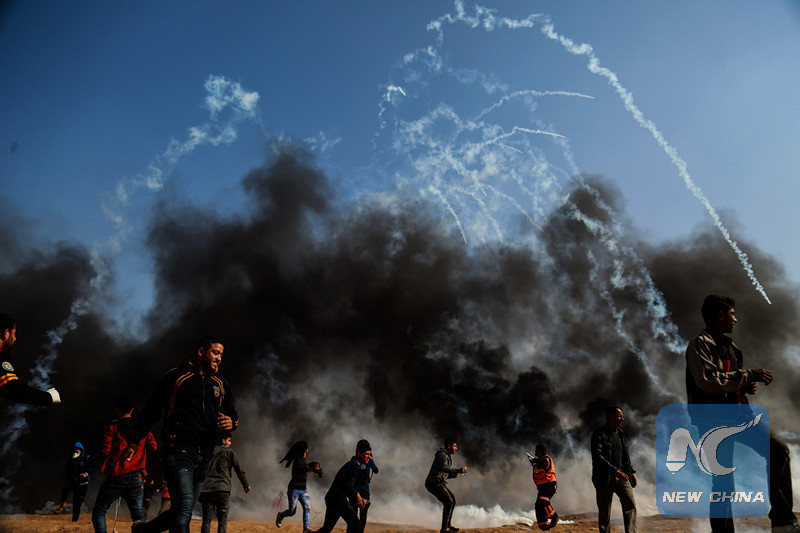 The clash erupted after demonstrators walked closer to the fence of the border between eastern Gaza Strip and Israel, where dozens of Israeli soldiers and snipers were stationed at the Israeli side.