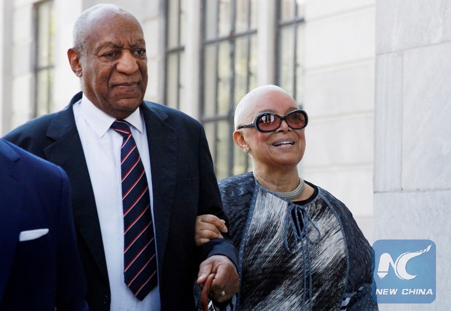 FIile photo shows that actor and comedian Bill Cosby arrives with his wife Camille for his sexual assault trial at the Montgomery County Courthouse in Norristown, Pennsylvania, the United States, June 12, 2017. (Xinhua/REUTERS)