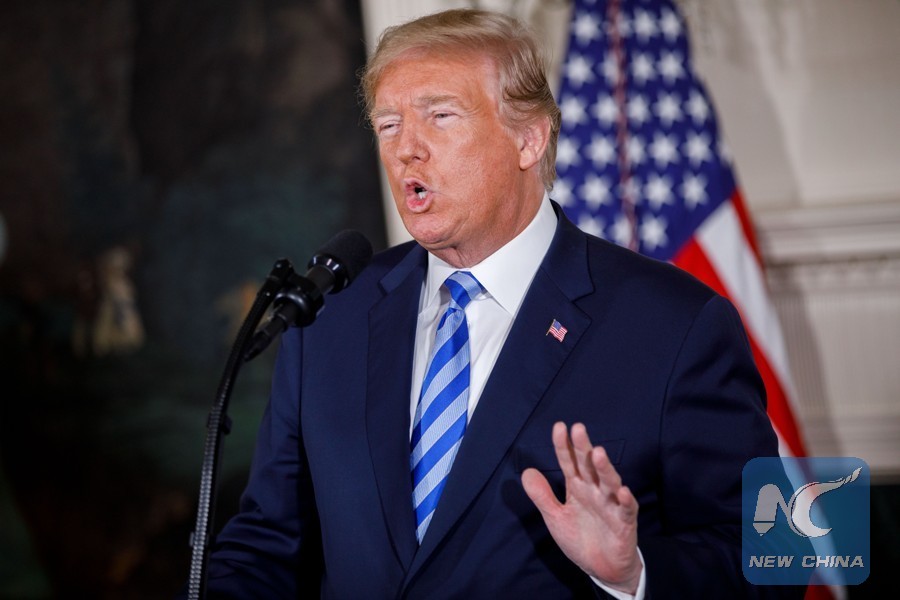 File Photo: U.S. President Donald Trump delivers a speech at the White House in Washington D.C., the United States, on May 8, 2018. (Xinhua/Ting Shen)