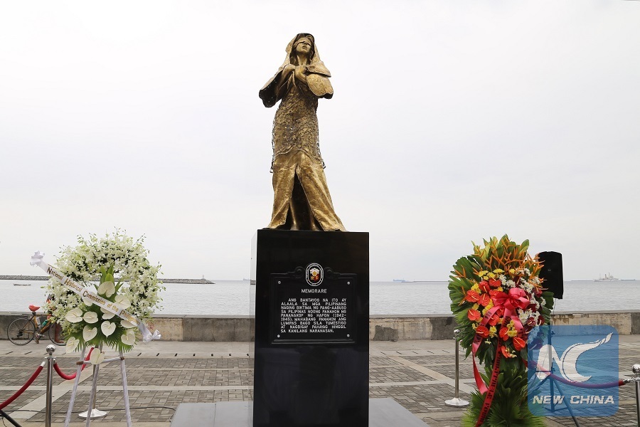 File photo taken on Dec. 8, 2017 shows a statue representing the "comfort women" in Manila, thePhilippines. (Xinhua/Dong Chengwen)
