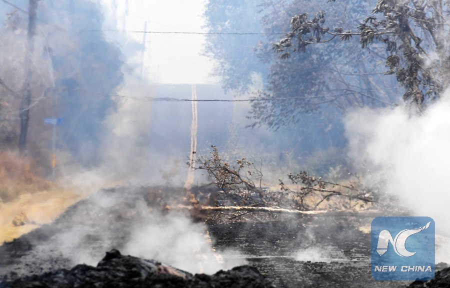 Volcanic debris are seen on a road in Leilani Estate, Hawaii, the United States, May 9, 2018. According to reports of the Hawaii State government, eruptions of the KilaueaVolcano had forced the evacuation of thousands of people. (Xinhua/Tao Xiyi)