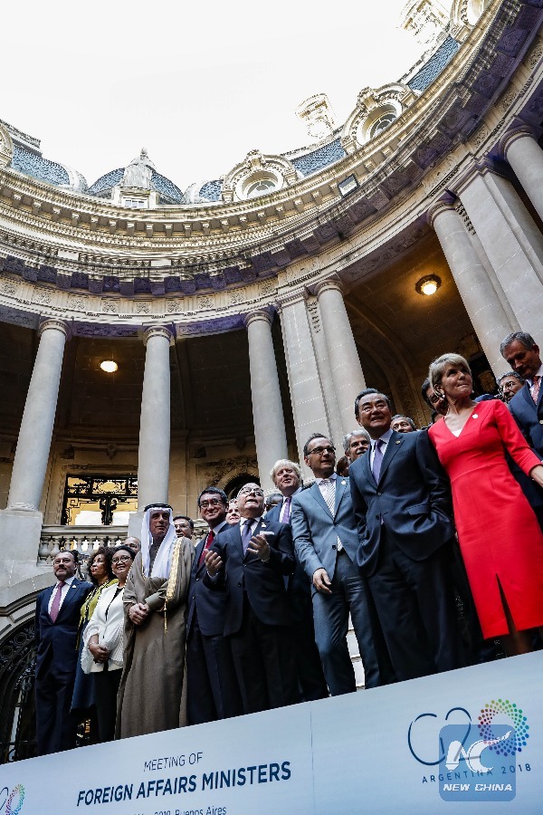 Chinese State Councilor and Foreign Minister Wang Yi (3rd R F) attends the G20 foreign ministers' meeting in Buenos Aires, Argentina, May 21, 2018. (Xinhua/Martin Zabala)
