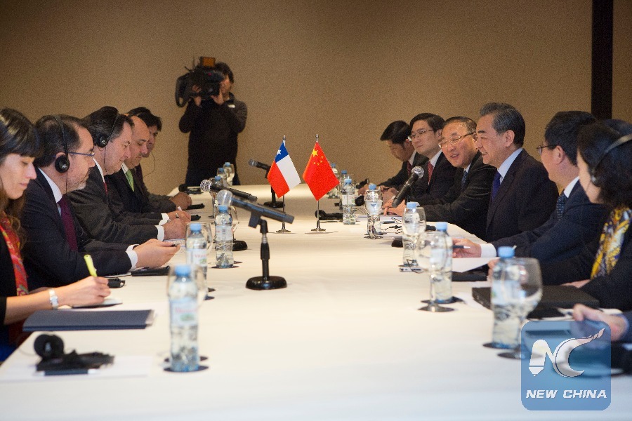 During a bilateral meeting with Wang, Chilean Foreign Minister Roberto Ampuero expressed his appreciation of China's role in safeguarding free trade and an open world economy, saying it's also an important cornerstone for Chile's diplomatic policy.