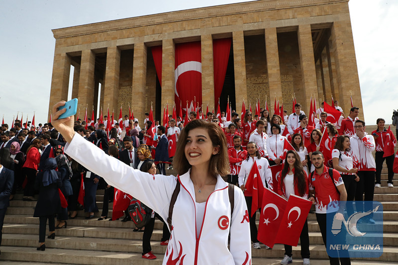 A Turkish young girl selfies at Anitkabir, Ataturk's mausoleum, in Ankara,Turkey, on May 19,2018. (Xinhua)