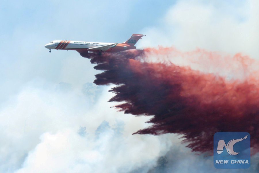 A plane drops fire-retardant chemicals on the 416 Fire near Durango, Colorado, U.S. in this June 9, 2018 handout photo. (Xinhua/La Plata County/REUTERS)
