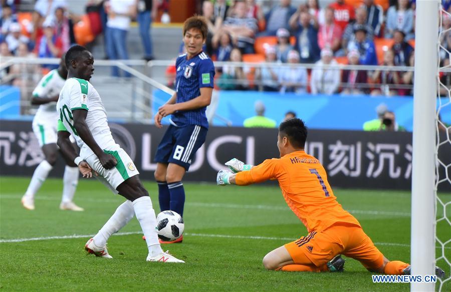 Sadio Mane (L) of Senegal scores a goal during the 2018 FIFA World Cup Group H match between Japan and Senegal in Yekaterinburg, Russia, June 24, 2018. (Xinhua/Liu Dawei)