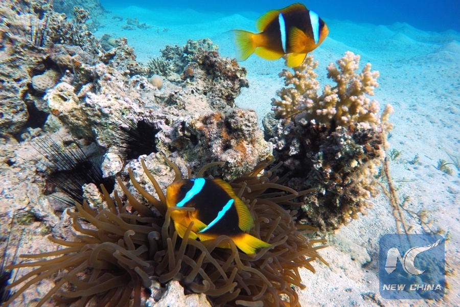 Fish swim among coral reefs in the waters of Red Sea near the resort town of Ras Shaytan, south Sinai, Egypt, Jan. 14, 2016. (Xinhua/Ahmed Gomaa)