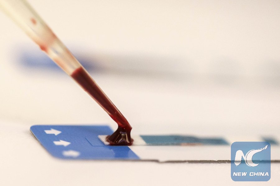The file photo shows that a nurse tests a blood sample during a free HIV test at a blood tests party, part of a campaign to prevent HIV infection among male same-sex couples, in Bangkok, Thailand, Sept. 20, 2014. (REUTERS Photo)