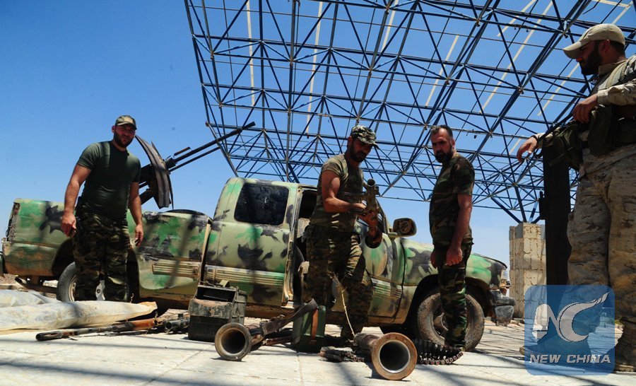 Syrian soldiers are seen at the Nasib border crossing with Jordan, in the southeastern countryside of Daraa, Syria, on July 7, 2018. (Xinhua/Ammar Safarjalani)