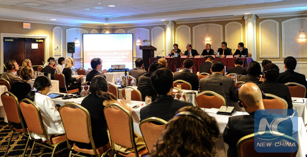 Chinese and U.S. specialists exchange ideas on intellectual property right (IPR) protection during an event held in Washington, D.C., the United Staets on Sept. 12, 2014. At the event, Chinese officials introduced the country's recent achievements in improving its IPR system, including the amending of the Trade Mark Law and Copyright Law, and the efforts to establish specialized IPR courts in Beijing, Shanghai and Guangzhou. (Xinhua/Bao Dandan)