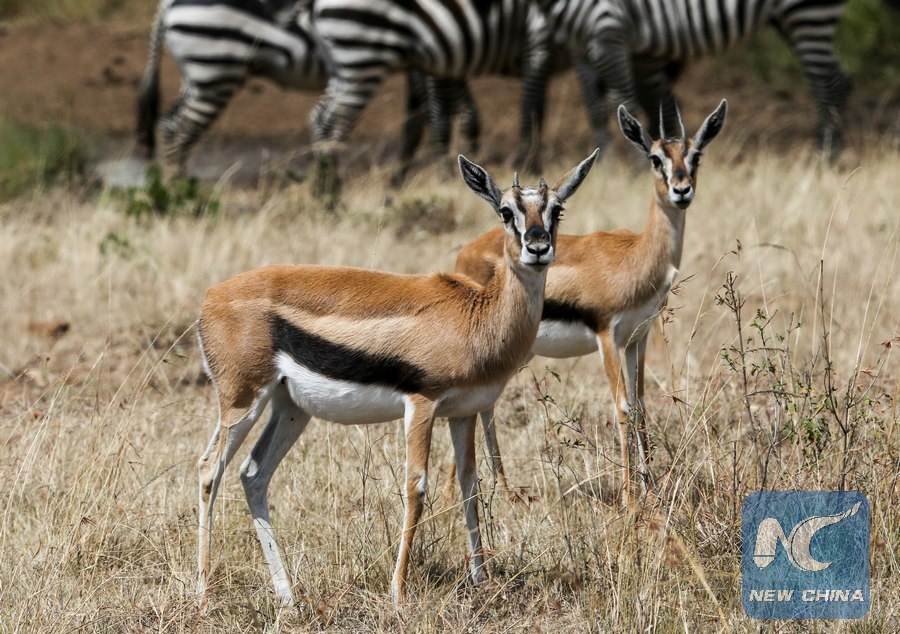 A couple of gazelles are seen at the Maasai Mara National Reserve, Kenya, July 23, 2016. The Maasai Mara National Reserve, popularly known as Africa's Greatest Wildlife Reserve, is a great tourist attraction center as it offers visitors an opportunity to observe the Africa's "big five": lion, cheetah, elephant, buffalo and rhino. (Xinhua/Pan Siwei)