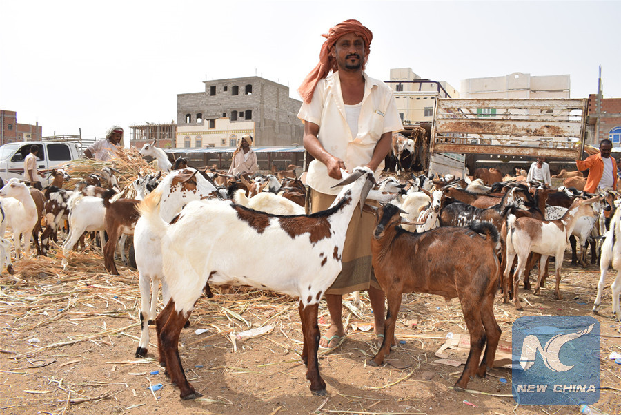 ADEN, Yemen, Aug. 17 (Xinhua) -- Cattle markets in the main cities of war-torn Yemen are recently thronged with customers eager to buy sacrificial animals for Eid al-Adha, the second of the two Islamic holidays celebrated worldwide.