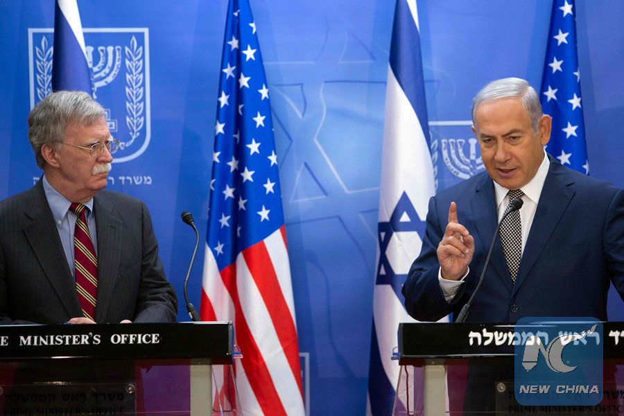 JERUSALEM, Aug. 20 (Xinhua) -- U.S. National Security Adviser John Bolton on Sunday told Israeli Prime Minister Benjamin Netanyahu that preventing Iran from obtaining nuclear weapons is "a top priority for the United States."
